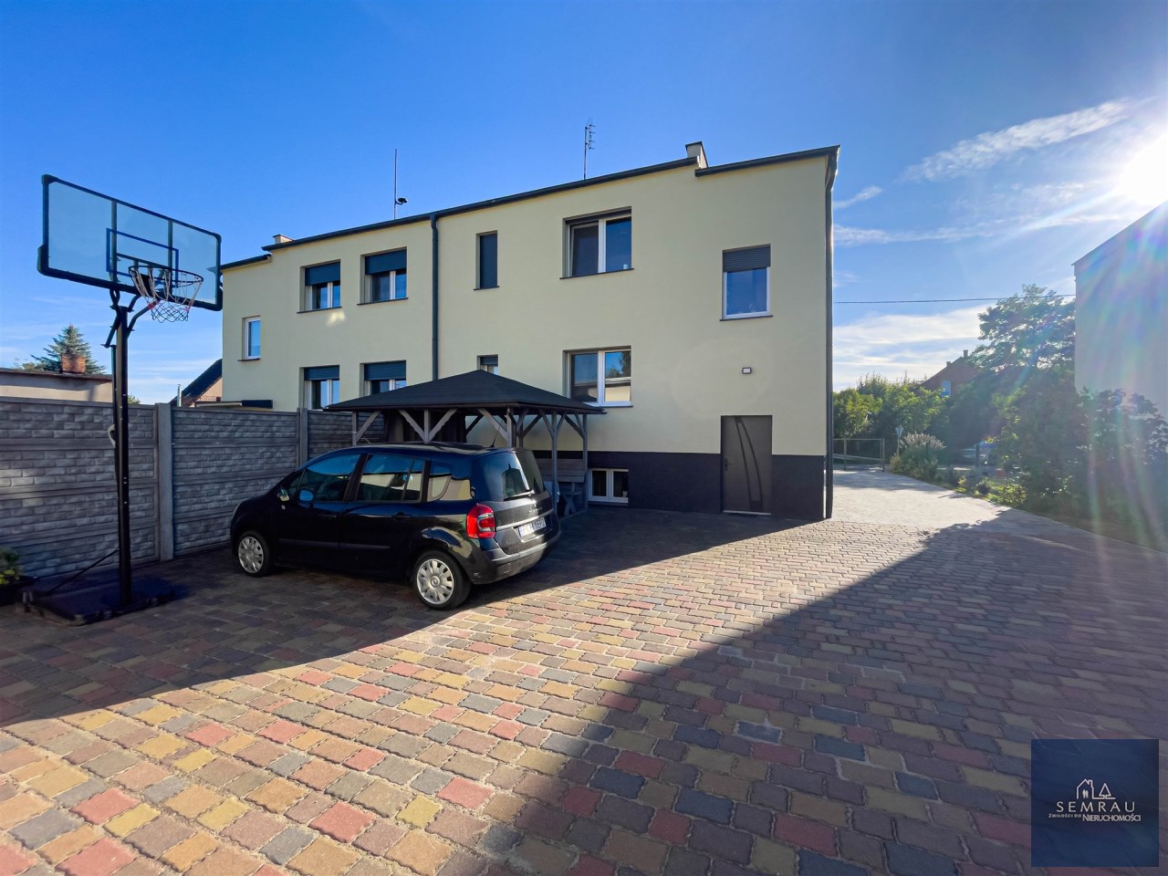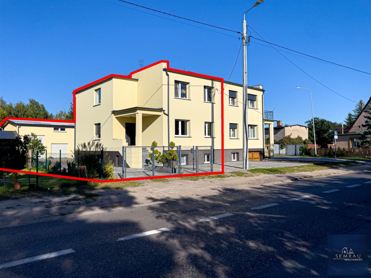 Dom w całości ogrodzony, od frontu dodatkowe miejsca parkingowe.