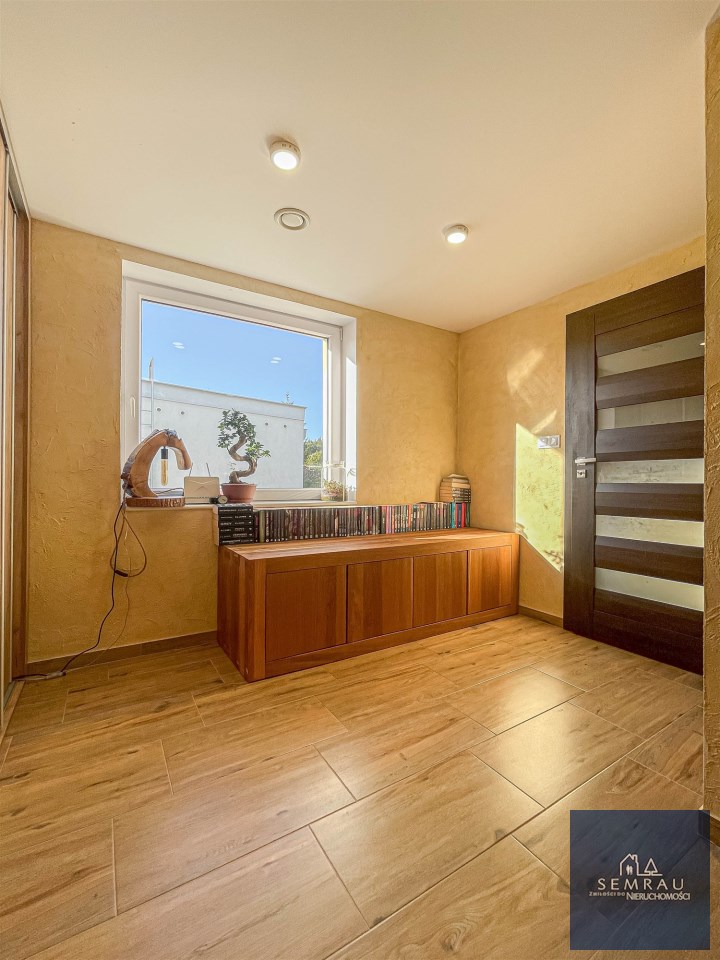 Piwnica w całości zaadaptowana – do dyspozycji pozostaje m.in. kuchnia letnia, sypialnia, łazienka, pokój typu hobby lub warsztat, a także kotłownia oraz pralnia.