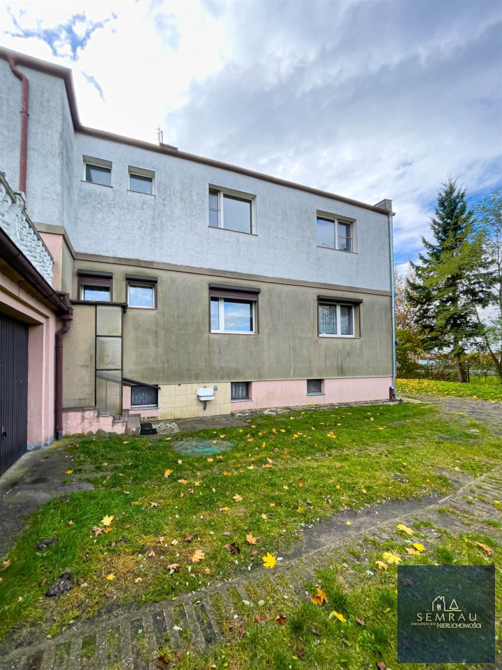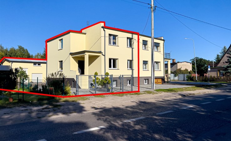 Budynek dwukondygnacyjny, podpiwniczony, stanowiący na chwilę obecną dwa odrębne lokale mieszkalne z wyodrębnionymi księgami wieczystymi oraz z dwoma garażami.