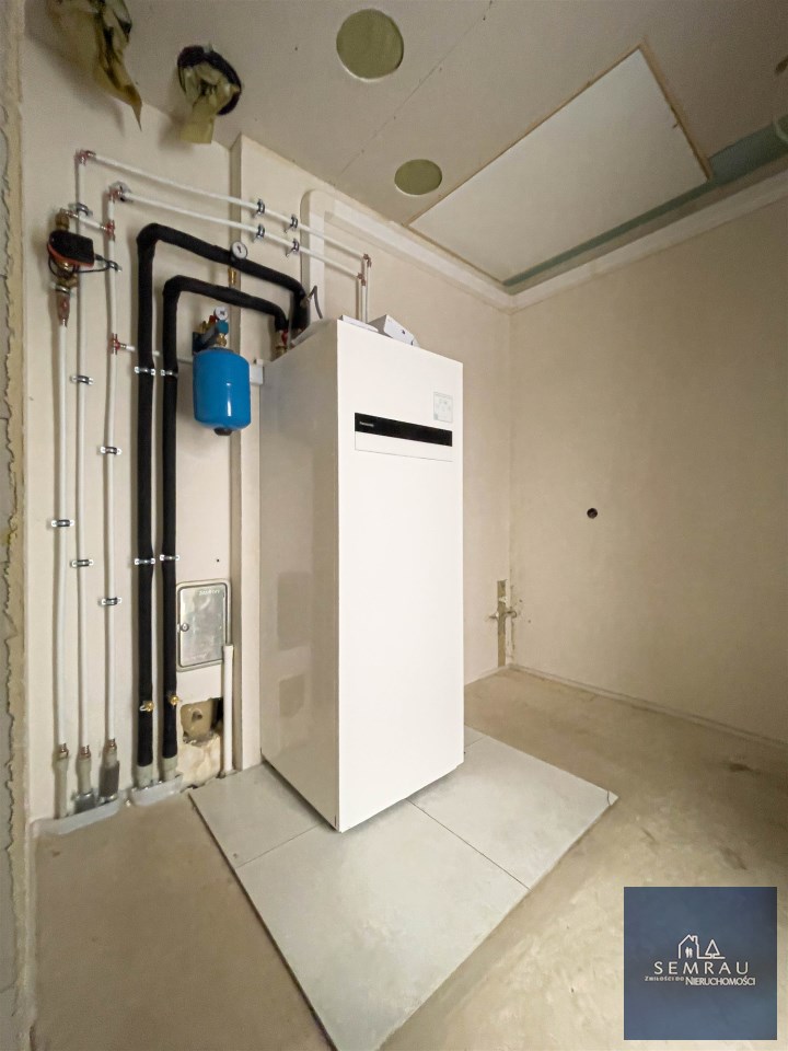 Dom znajduje się w stanie deweloperskim, co daje przyszłym Właścicielom pełną swobodę aranżacji wnętrz według własnych potrzeb i gustu. Nieruchomość jest zasilana nowoczesną pompą ciepła, co przekłada się na niskie koszty eksploatacji i komfort użytkowania przez cały rok. Pompa ciepła pozostaje na gwarancji producenta. Dom został również przygotowany pod montaż rekuperacji – wykonana jest kompletna instalacja, do dokupienia pozostaje jedynie sam rekuperator.