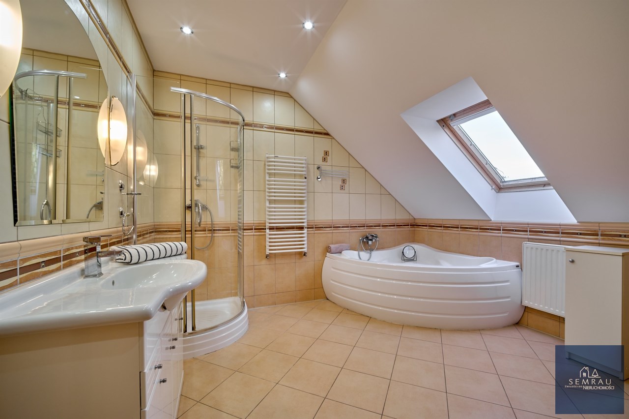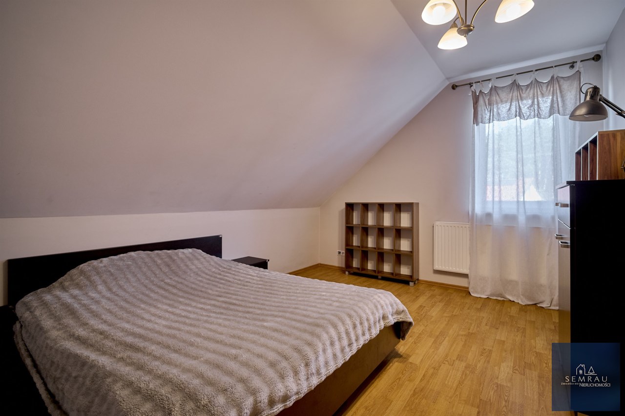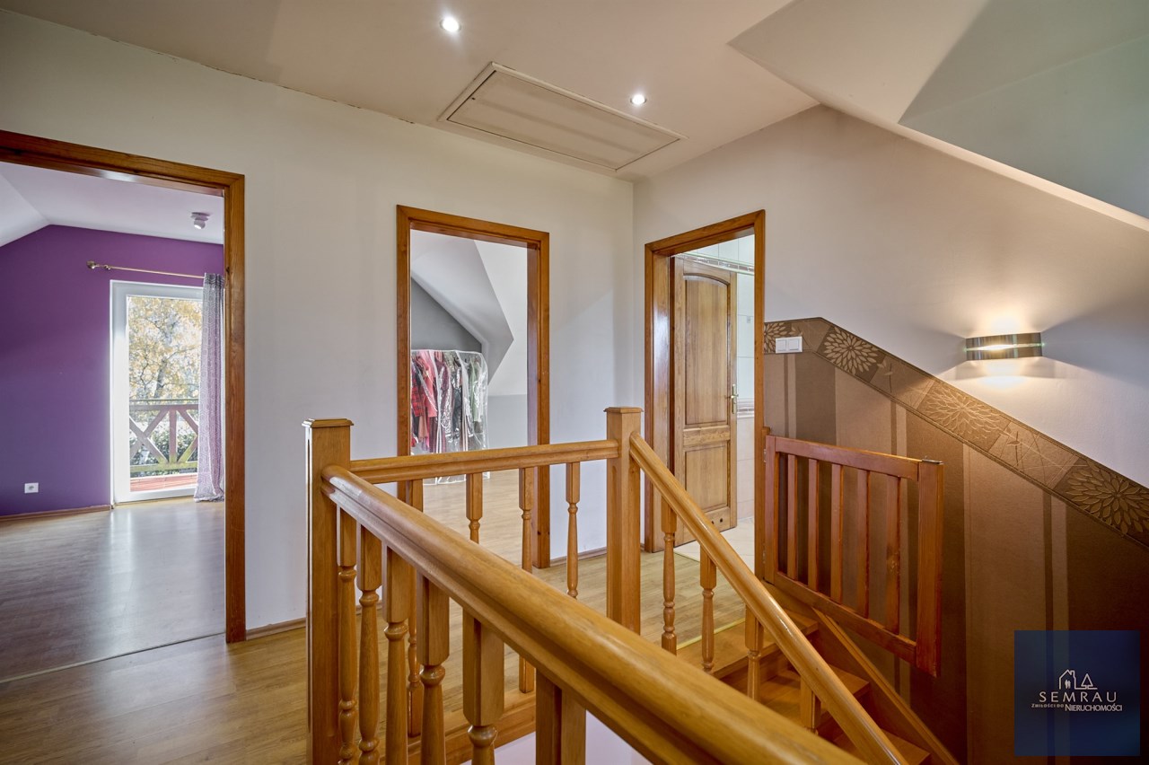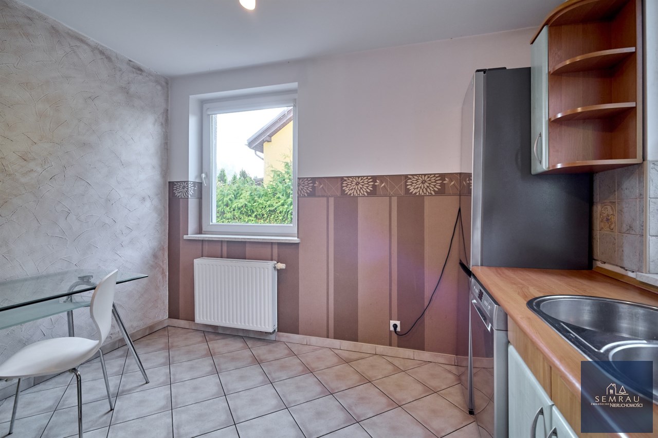 Dom oferuje przemyślany, niezwykle czytelny podział na strefy: część dzienna na parterze z przestronnym salonem oraz praktyczną kuchnią, a także strefa prywatna na poddaszu — trzy komfortowe sypialnie oraz duża łazienka tworzą idealne miejsce wypoczynku.