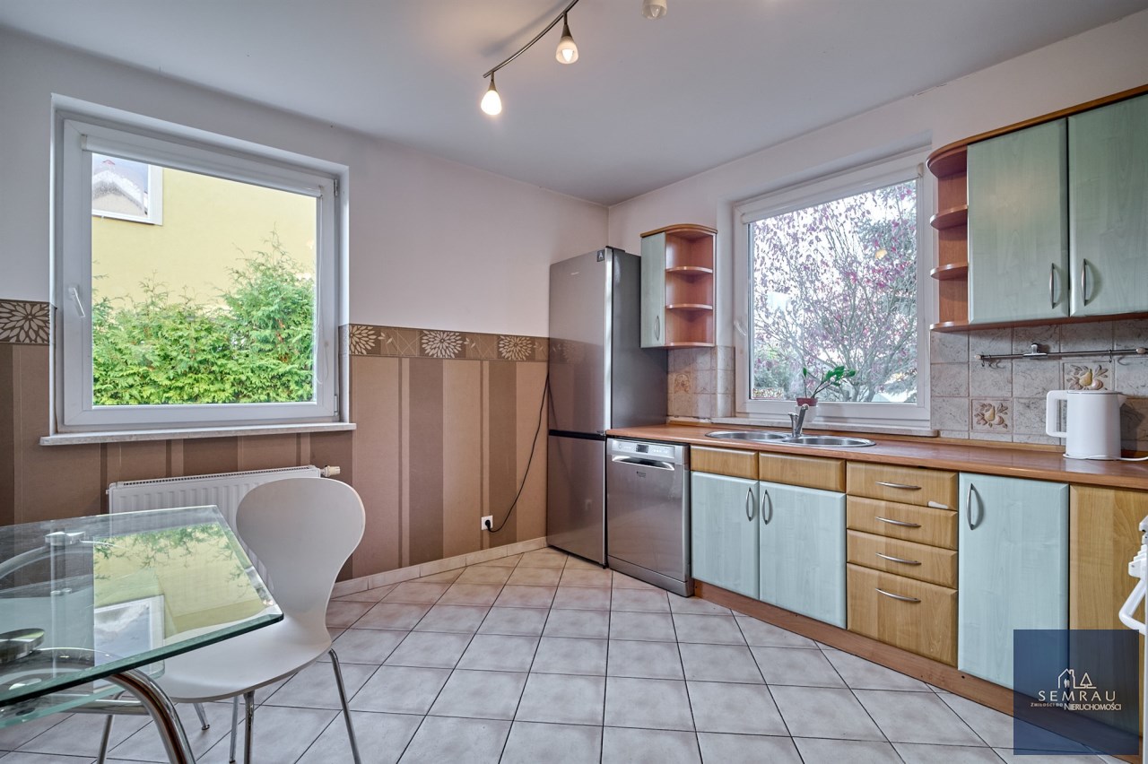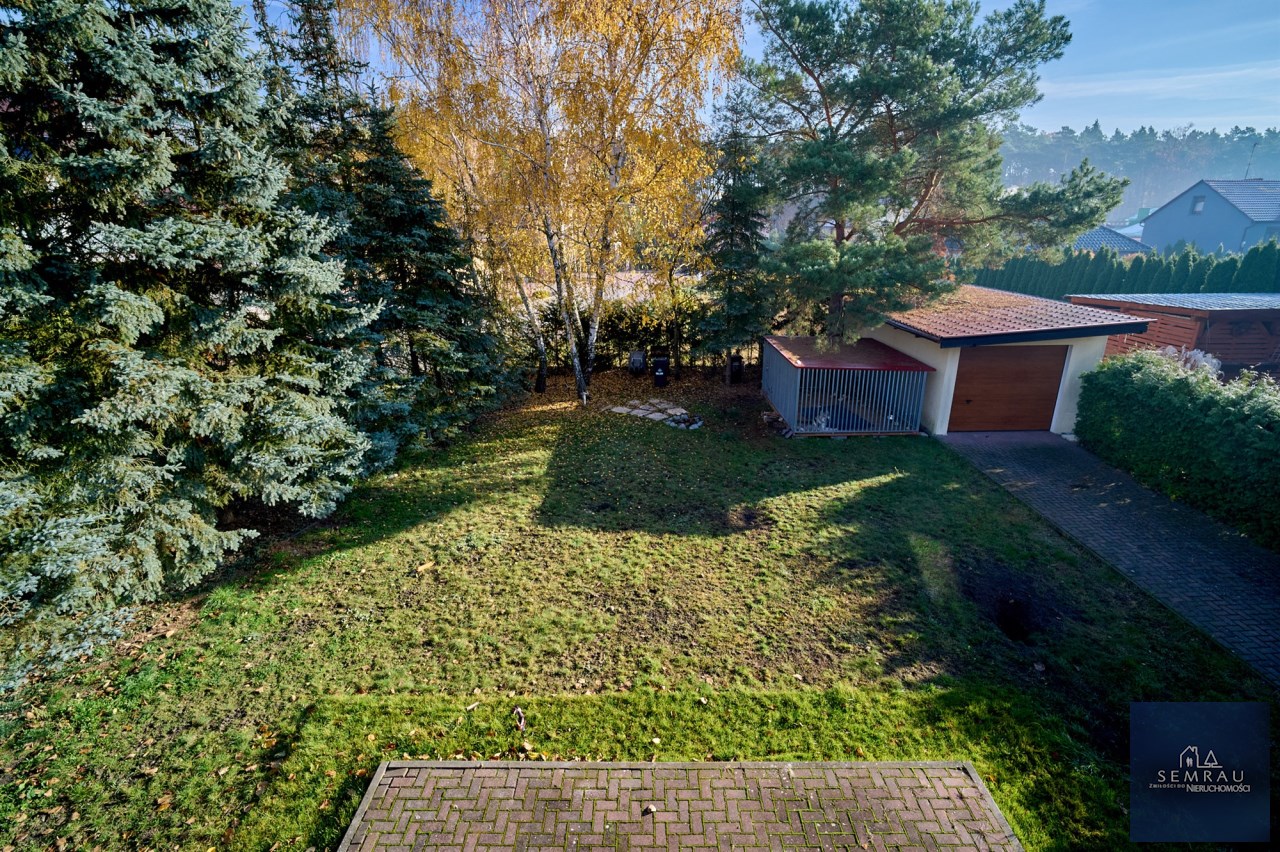 Działka narożnikowa to prawdziwa perełka tej oferty — dojrzałe nasadzenia zapewniają pełną prywatność, wolnostojący garaż daje dodatkowe możliwości, a wykostowane miejsce do relaksu, z wyjściem bezpośrednio z wykuszu salonu, zachęca do odpoczynku praktycznie o każdej porze roku.