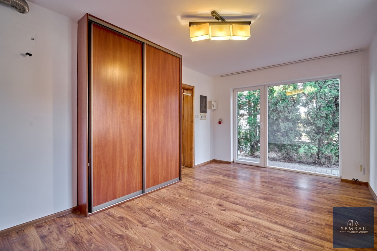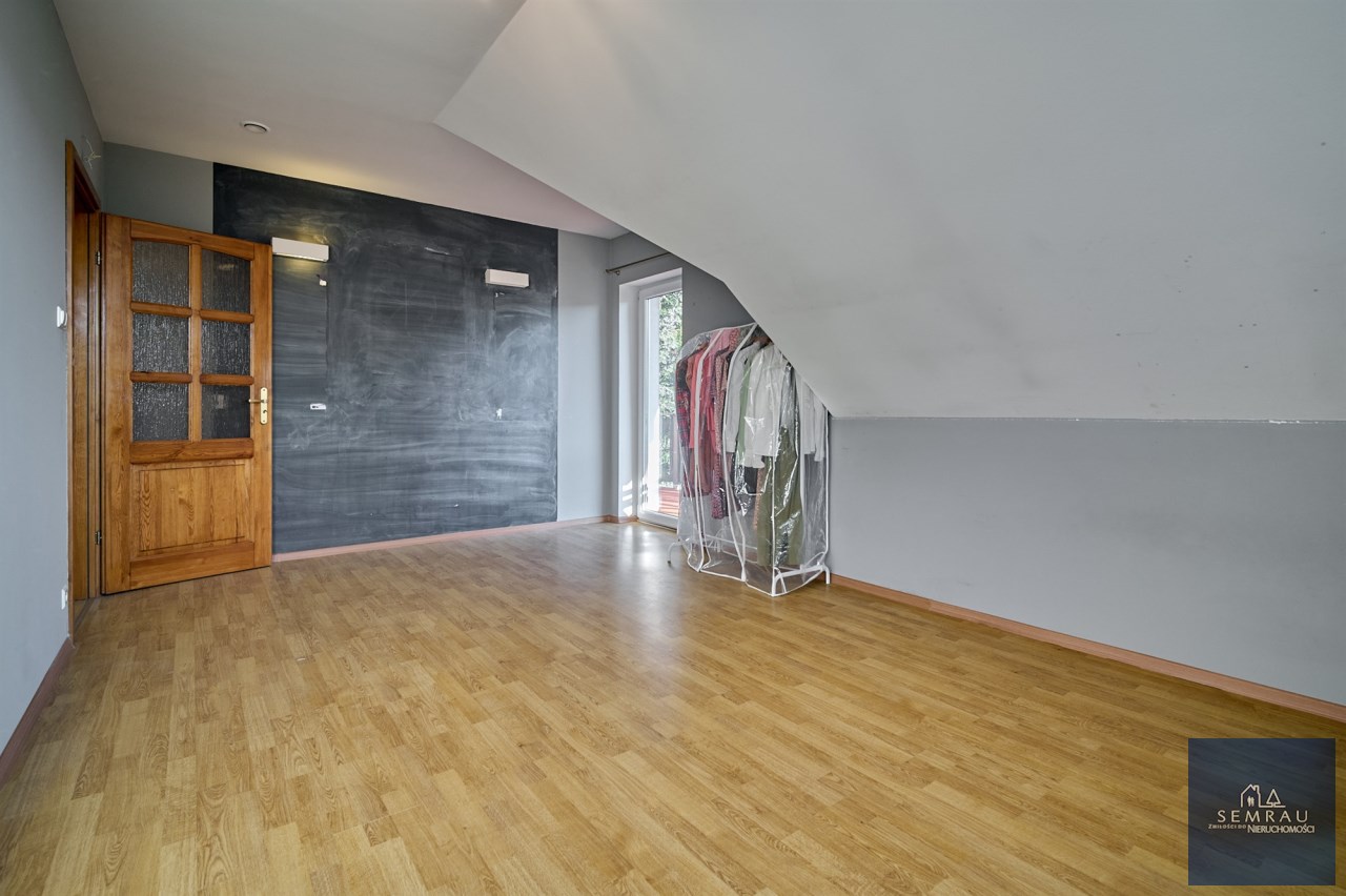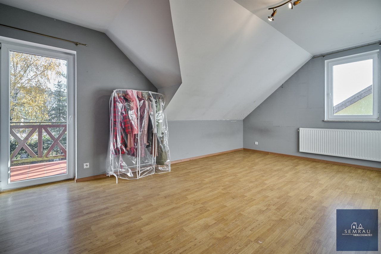 Garaż w bryle budynku, obecnie zaadaptowany na dodatkowy pokój, świetnie sprawdzi się również jako gabinet, studio lub pomieszczenie pod niewielką działalność.