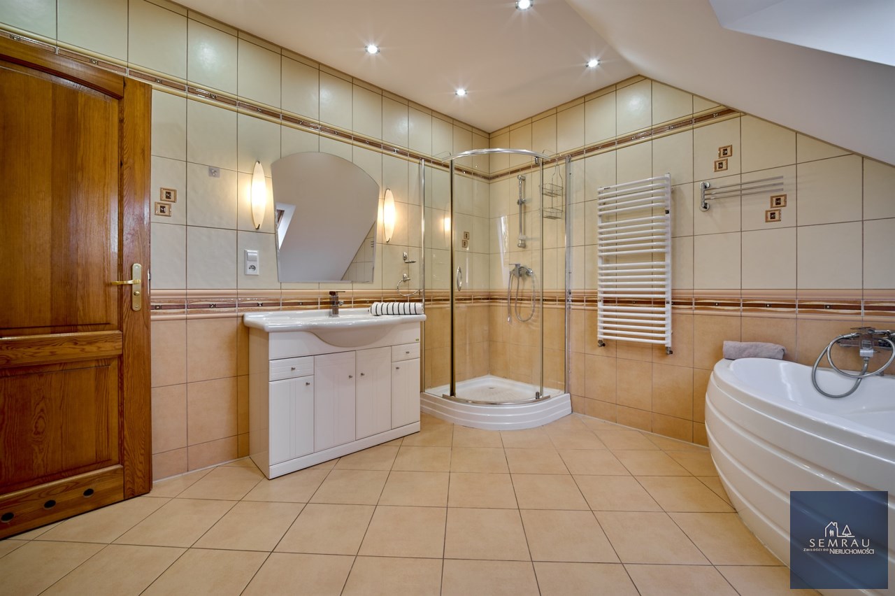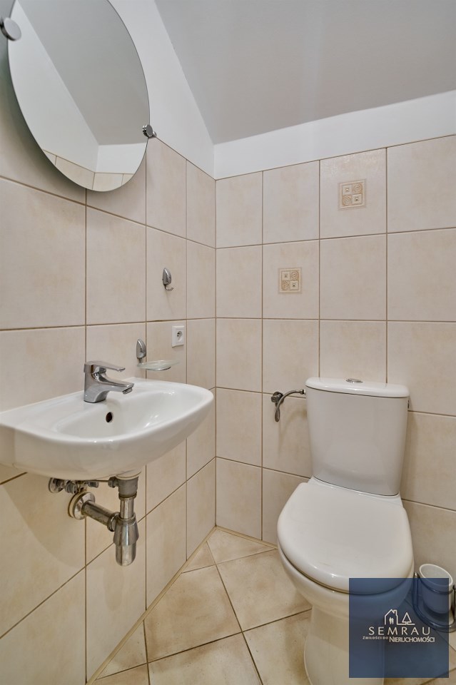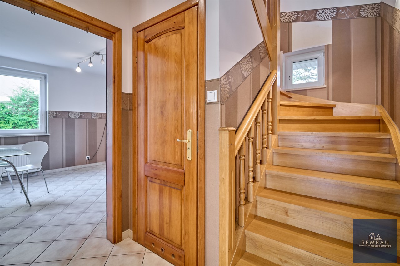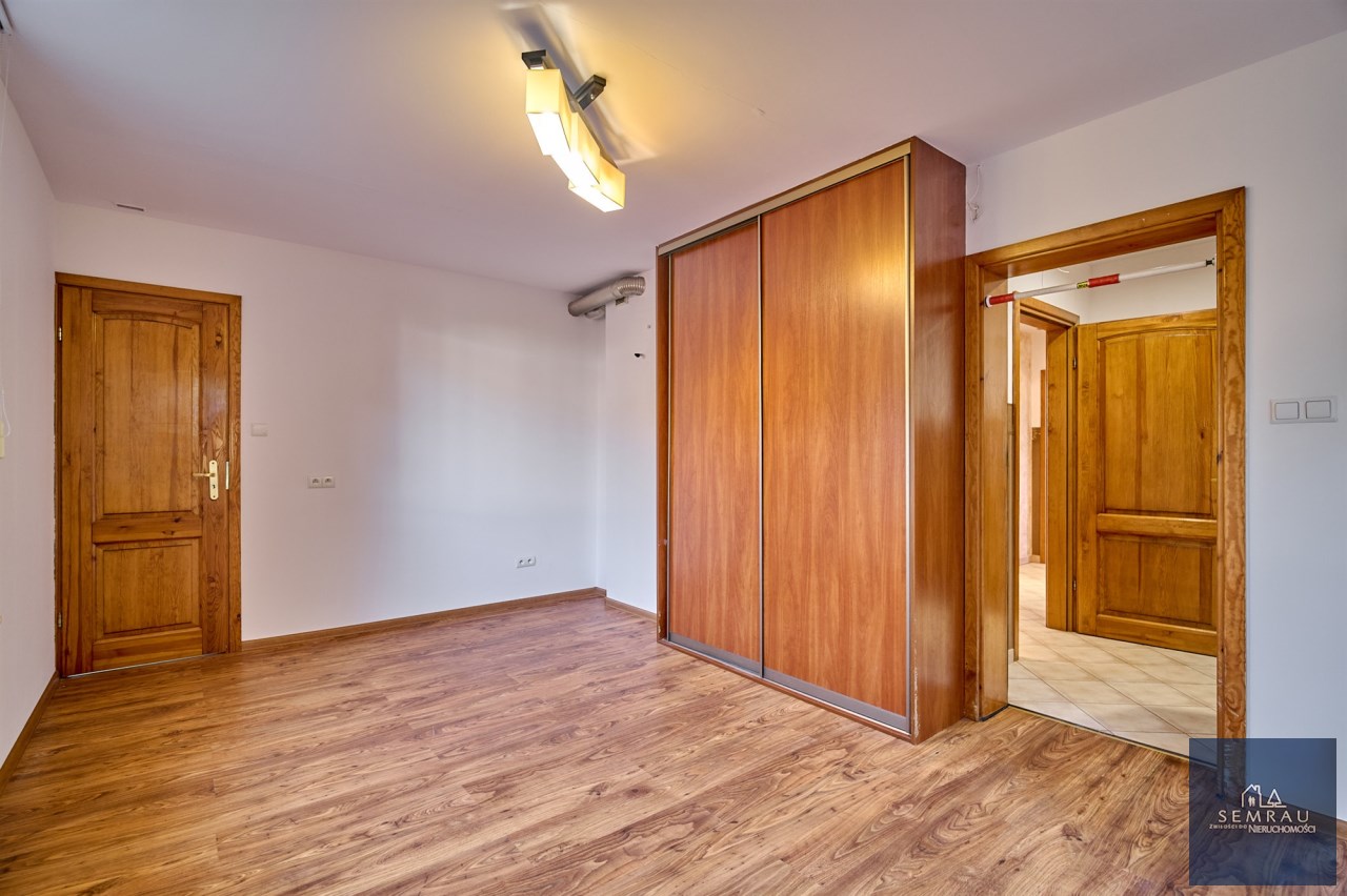 Garaż w bryle budynku, obecnie zaadaptowany na dodatkowy pokój, świetnie sprawdzi się również jako gabinet, studio lub pomieszczenie pod niewielką działalność.