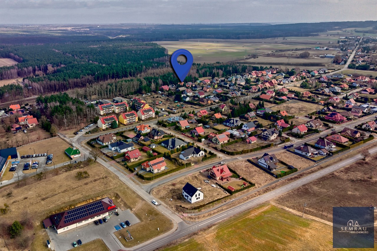 Kaczory, ul. Sosnowa – dom wolnostojący o powierzchni użytkowej 168 m² (pow. całkowita 216 m²) z garażem oraz wiatą na samochód, posadowiony na działce o powierzchni 760 m².