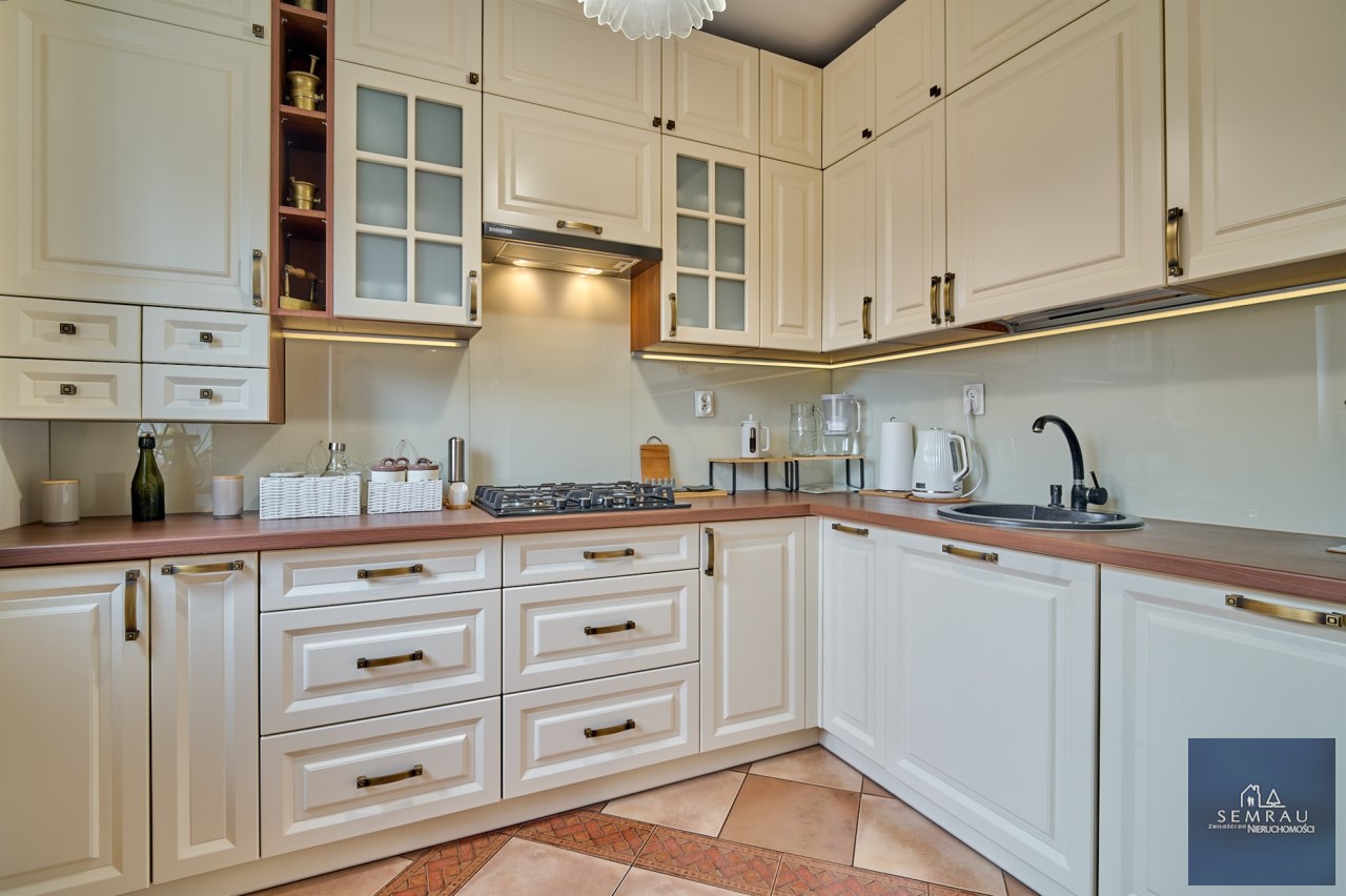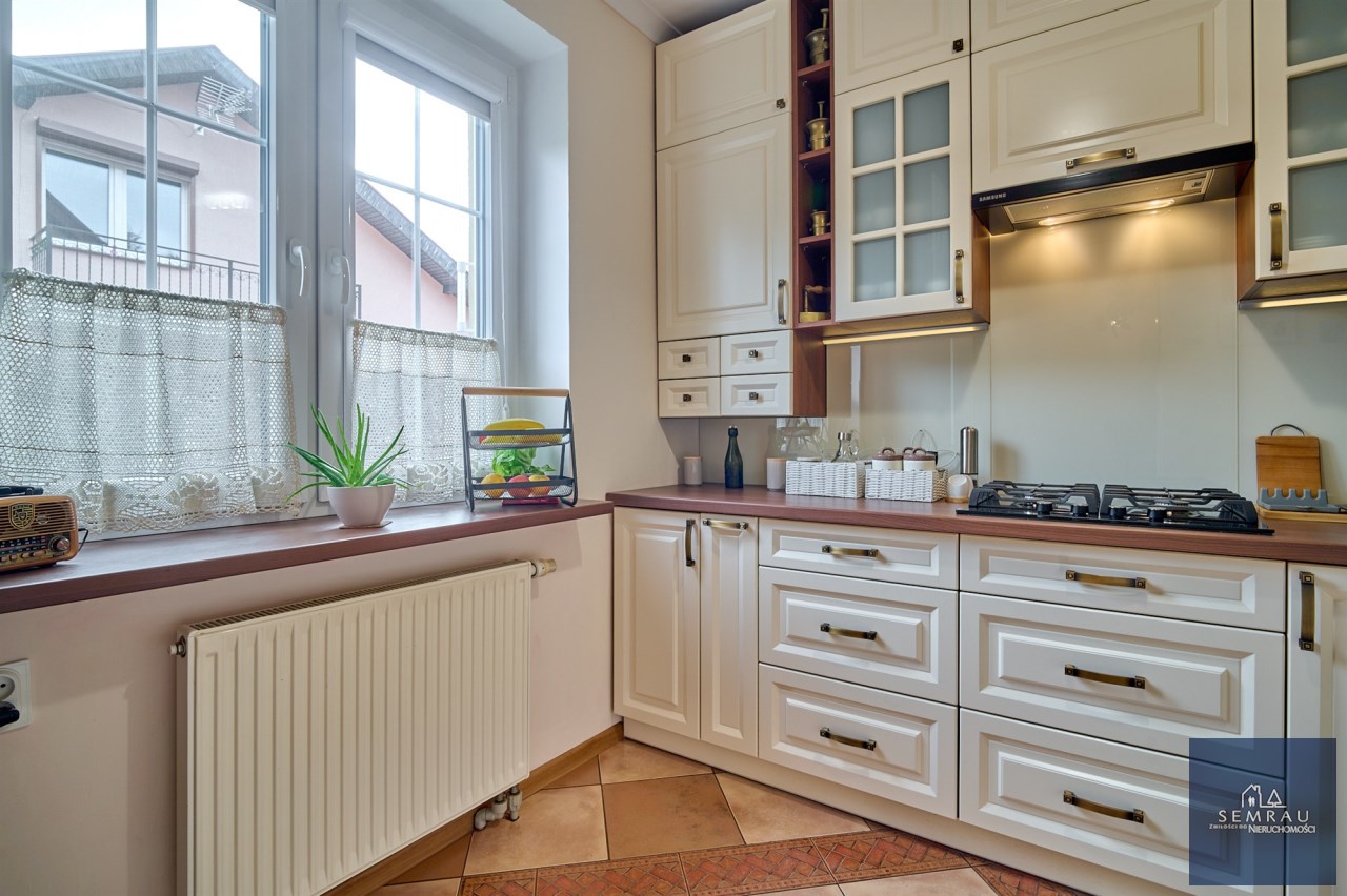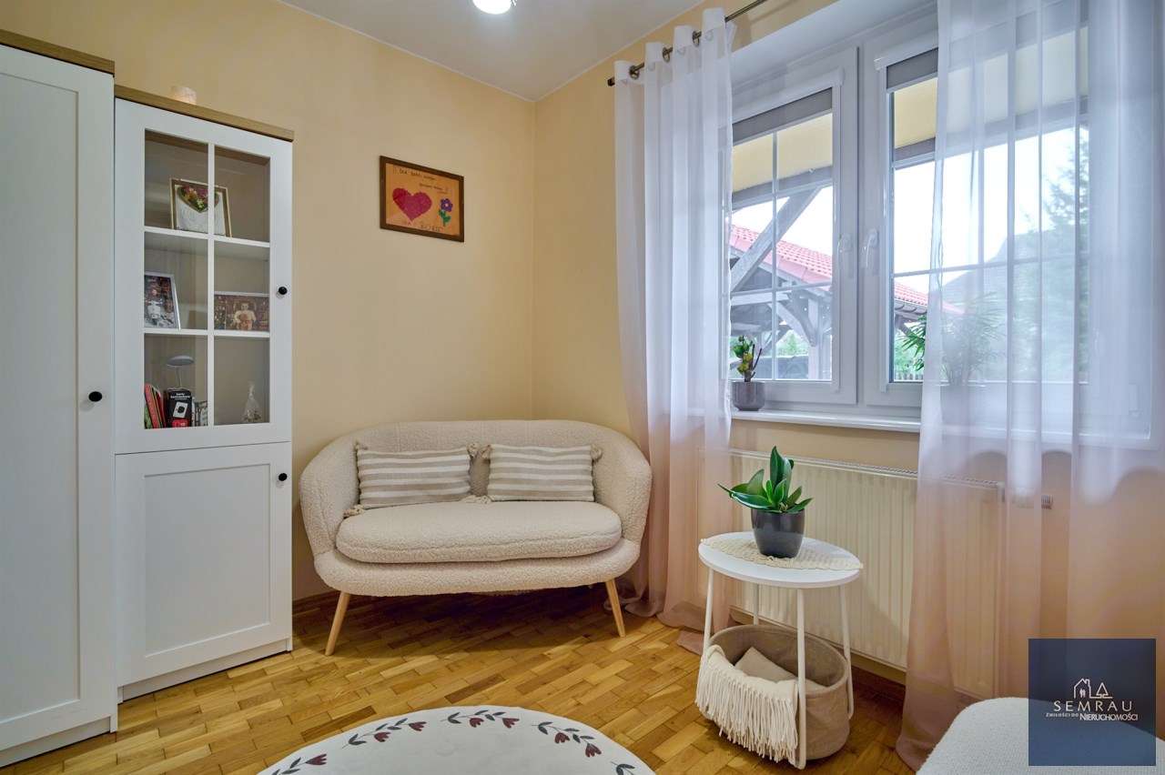 Nieruchomość z 2005 roku, systematycznie modernizowana – m.in. nowa zabudowa kuchenna wraz ze sprzętem AGD, wymiana okien na trzyszybowe, nowe rolety, a od strony lasu dodatkowo rolety zewnętrzne. Na parterze znajduje się również odnowiona łazienka z prysznicem oraz osobne WC.
