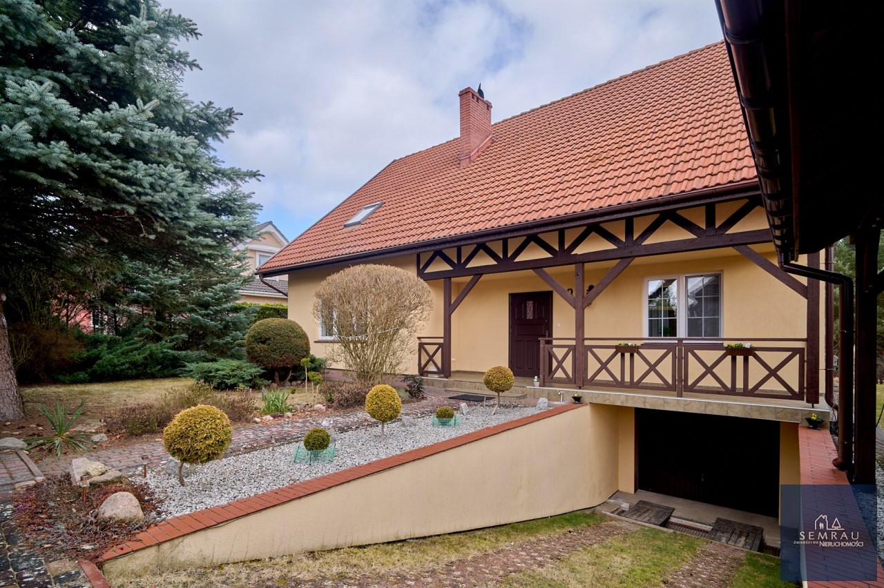 Dom jest w całości podpiwniczony – do dyspozycji m.in. garaż, kuchnia letnia oraz spiżarnia.
