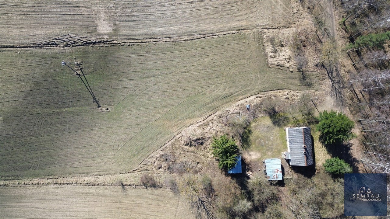 Na działce znajduje się budynek mieszkalny oraz mały budynek gospodarczy, stan budynków: raczej do rozbiórki.