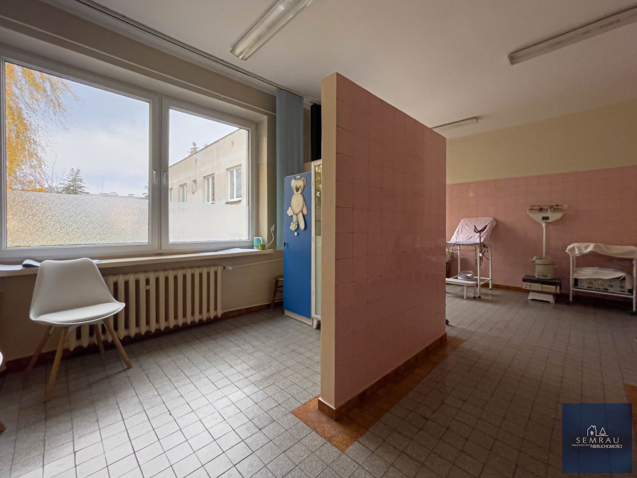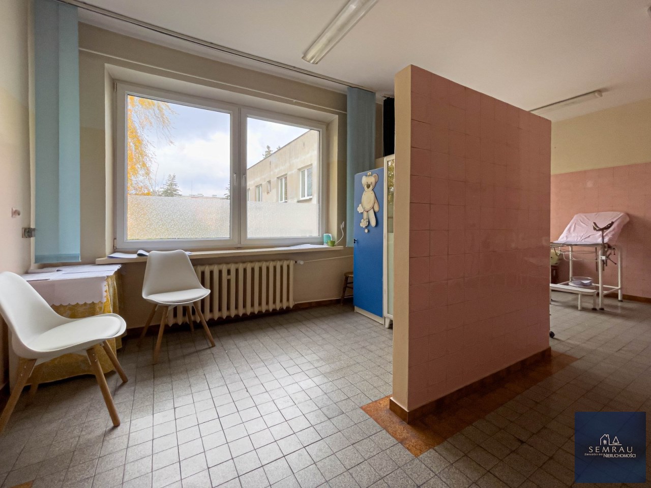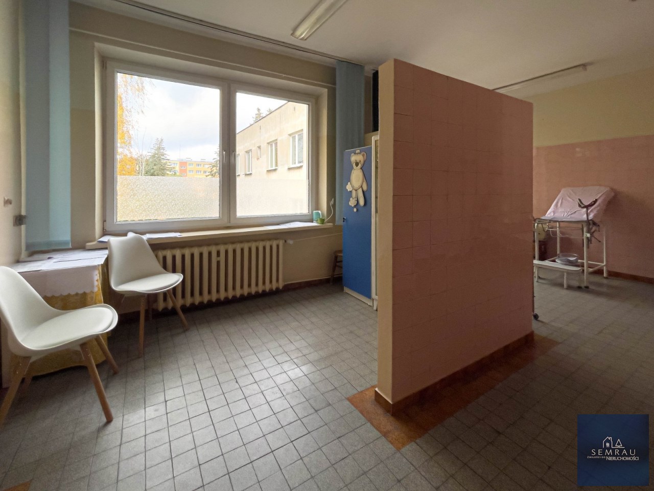Lokal jest bardzo jasny, przestronny i ustawny, z dużymi możliwościami aranżacyjnymi. Dotychczas pełnił funkcję gabinetu położniczego.