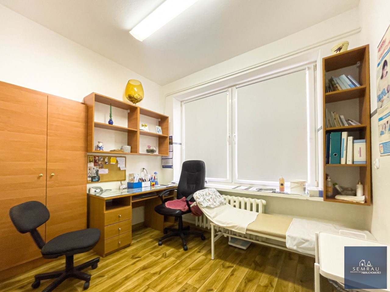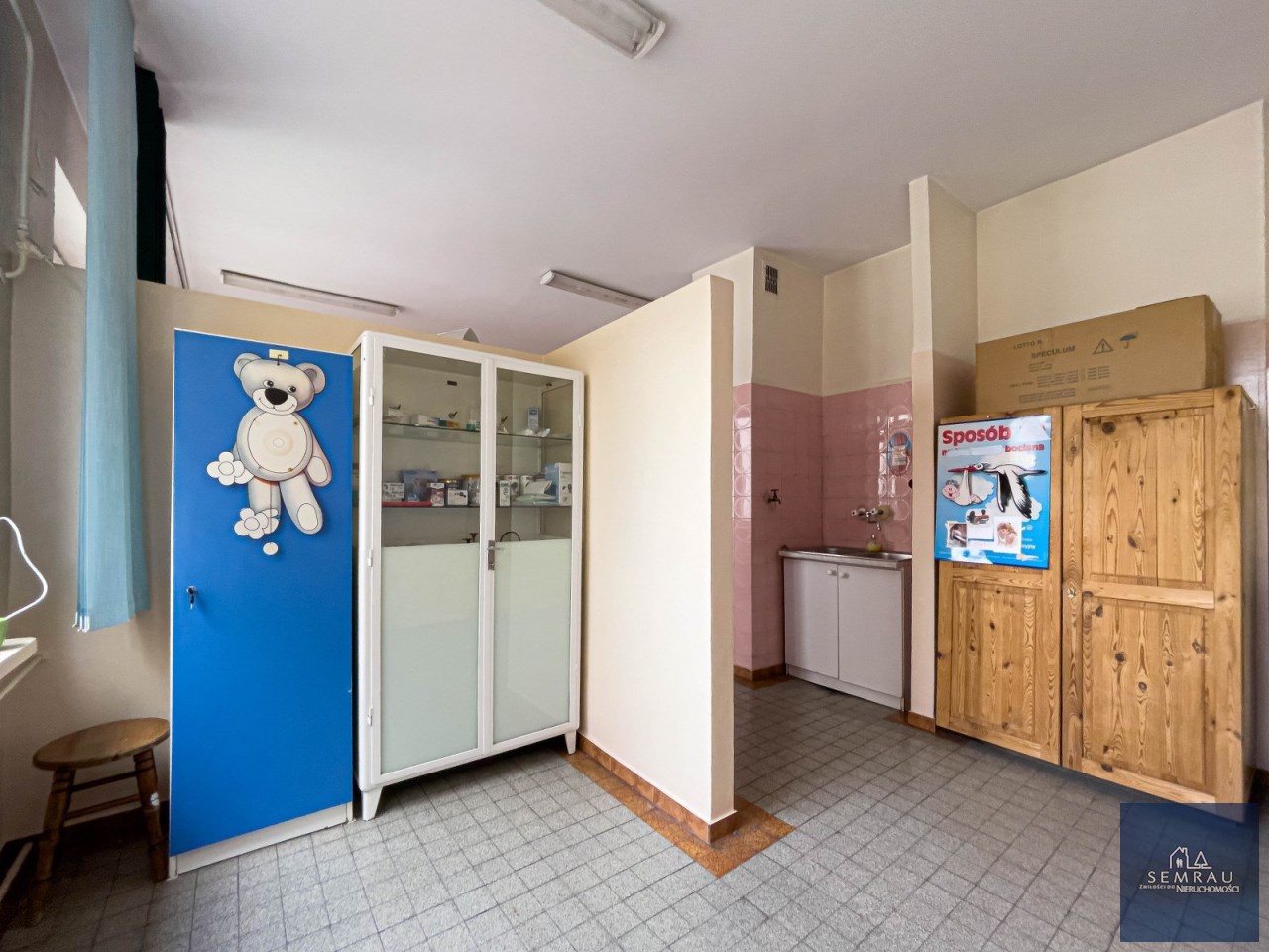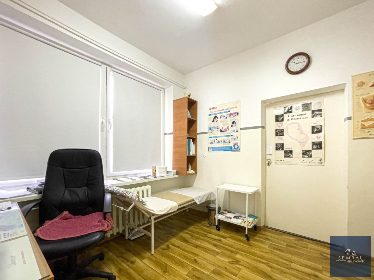 Lokal jest bardzo jasny, przestronny i ustawny, z dużymi możliwościami aranżacyjnymi. Dotychczas pełnił funkcję gabinetu położniczego.
