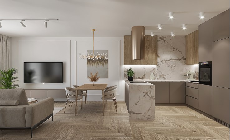 Kuchnia oraz pokój dzienny– południowy zachód (popołudniowe słońce).