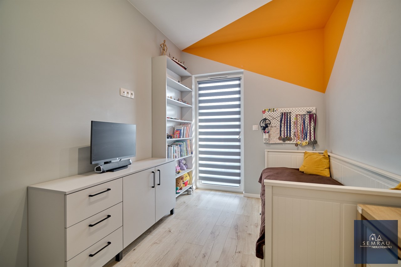 Drugi pokój może służyć jako sypialnia, pokój dziecka lub gabinet. Z niego również prowadzi wyjście na przestronną loggię z widokiem na zieleń, idealną do relaksu przy zachodzącym słońcu.