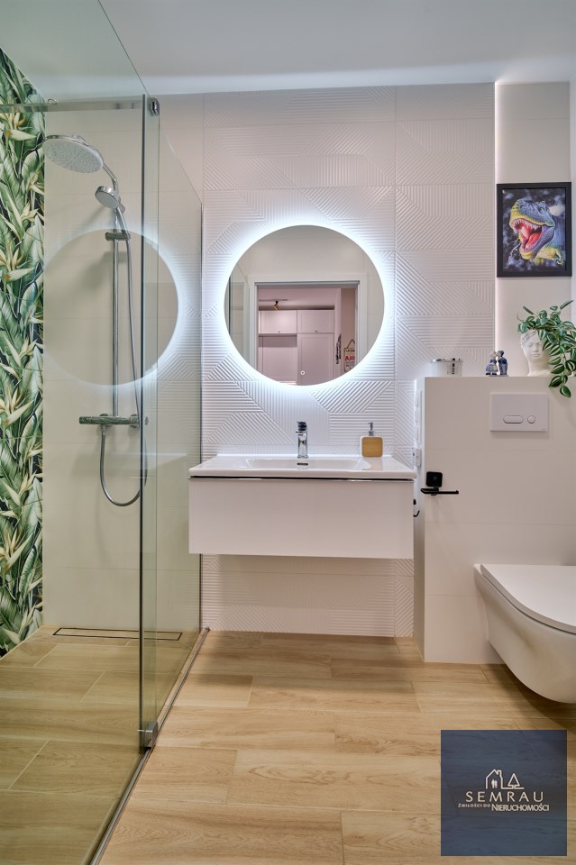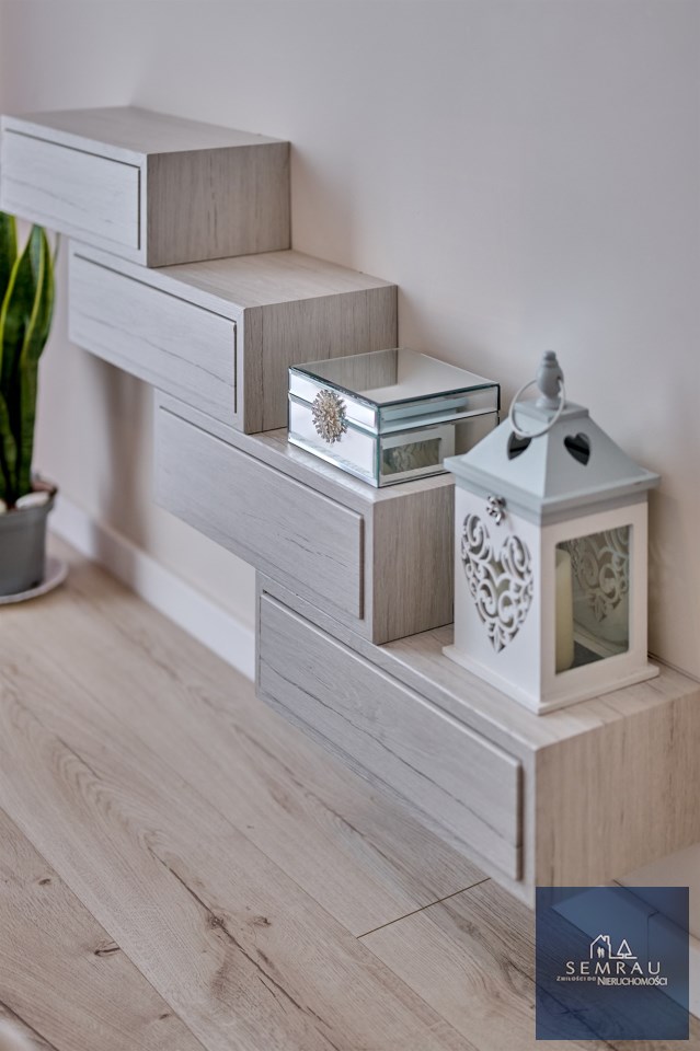 W całym mieszkaniu znajduje się ogrzewanie podłogowe podzielone na trzy niezależne strefy, dzięki czemu łatwo dopasujesz temperaturę w każdym pomieszczeniu do swoich potrzeb.