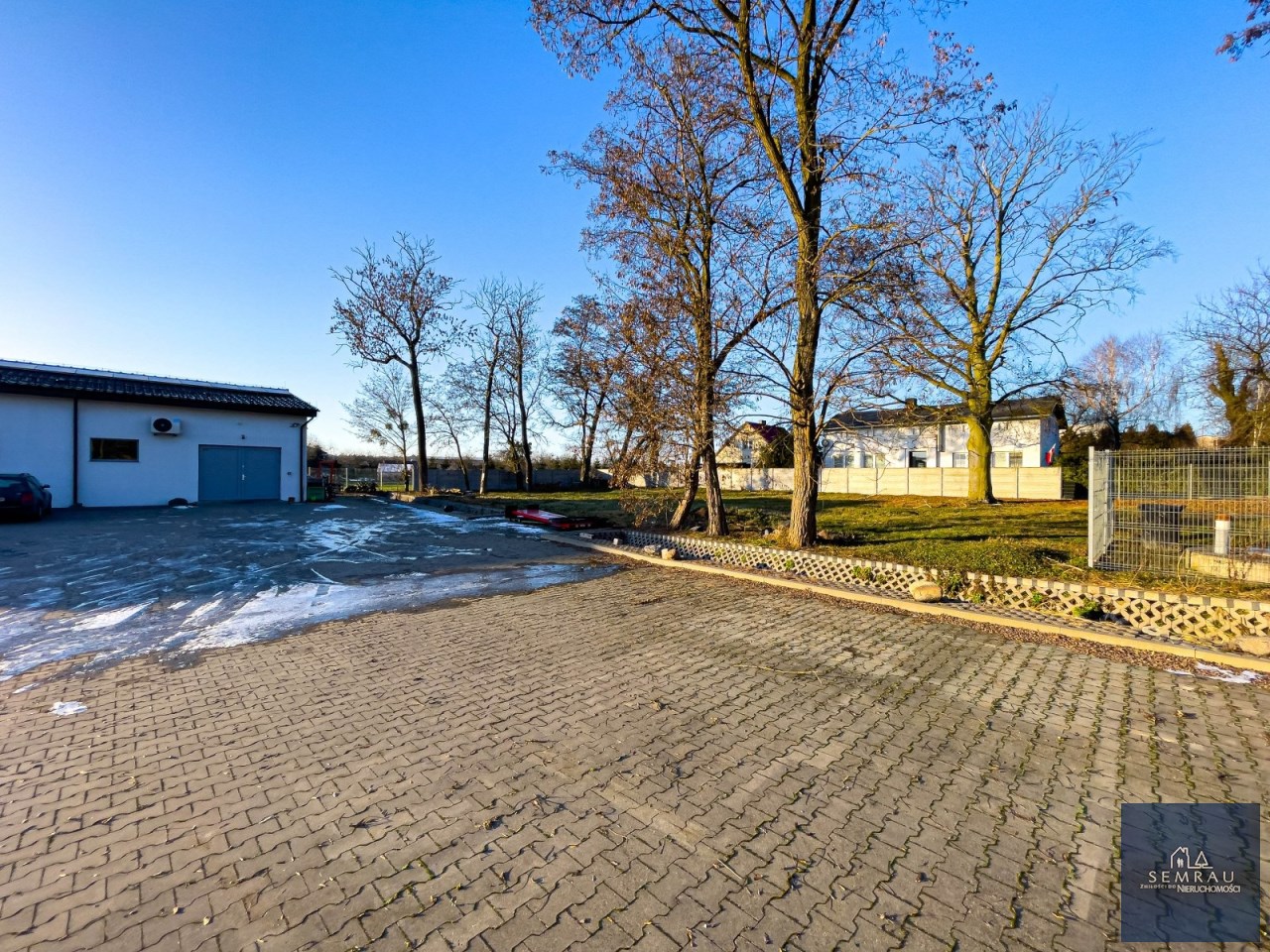 Nieruchomość znajduje się na dobrze zagospodarowanym, ustawnym terenie z wygodnym parkingiem dla klientów i dostawców, co usprawnia logistykę prowadzenia działalności. Całość jest funkcjonalna i daje możliwość dalszego zagospodarowania lub rozbudowy. Działka nr 214/9 posiada wydane warunki zabudowy na budynek o powierzchni do 500 m².