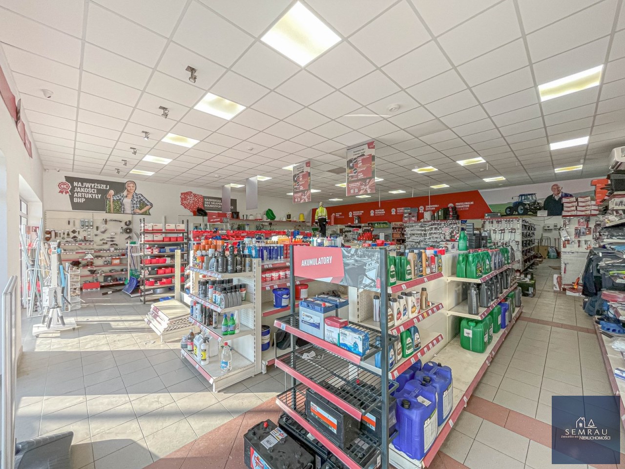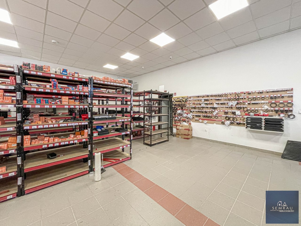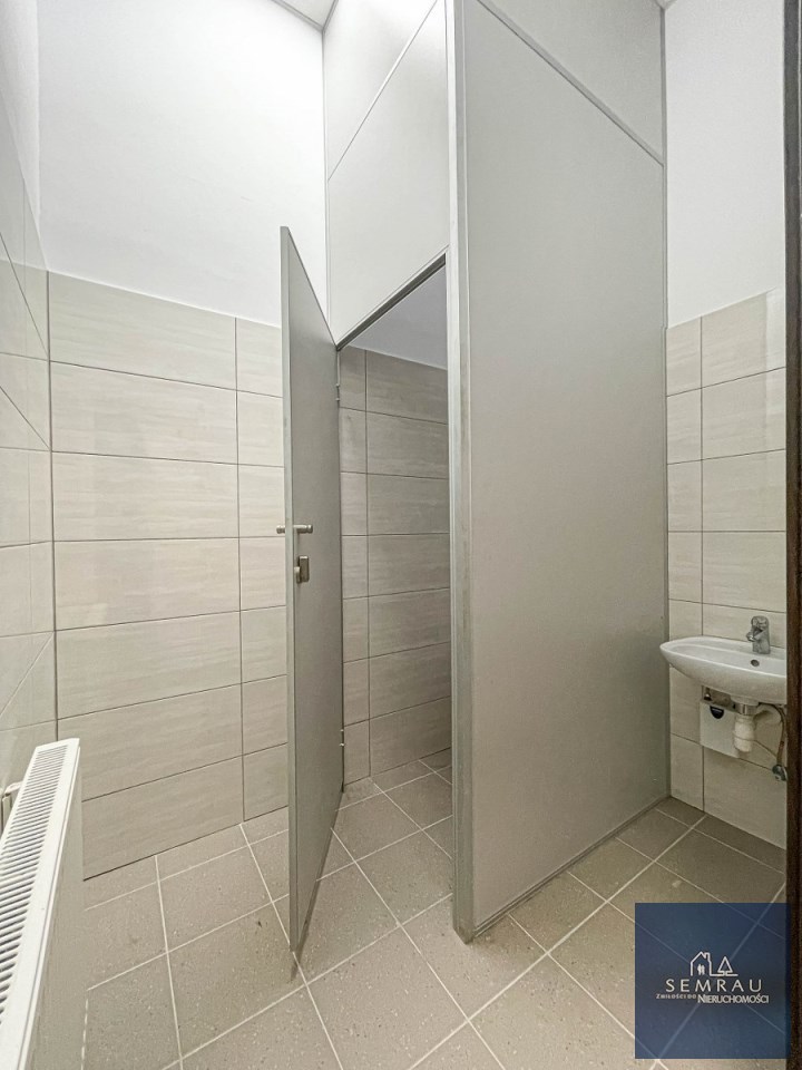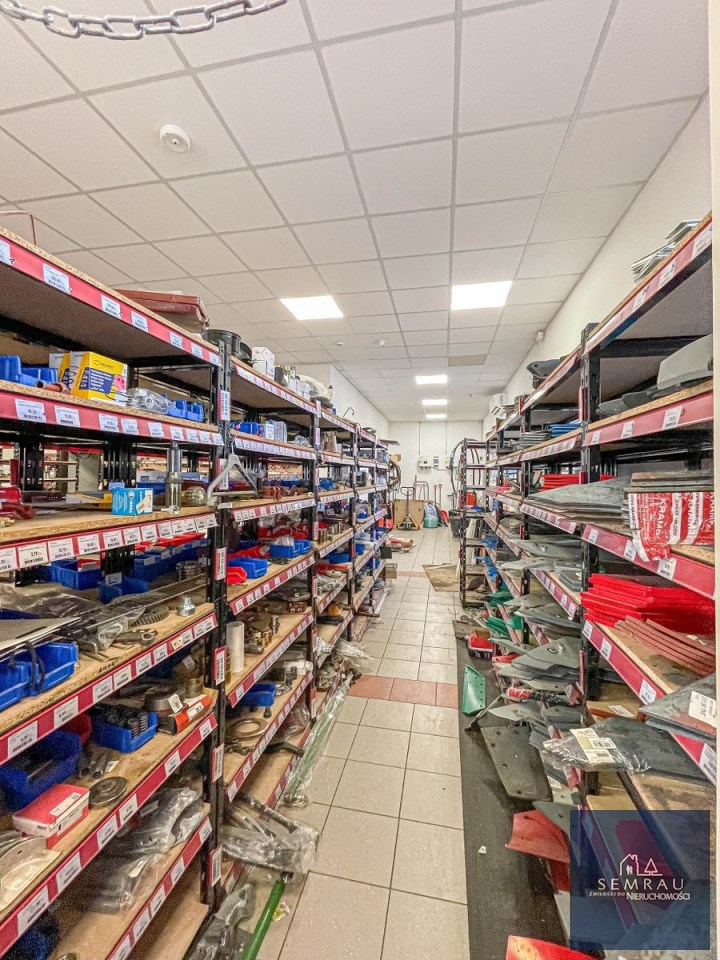 Funkcjonalny rozkład pomieszczeń - podzielony na część sprzedażową, magazynową, socjalną oraz biurową.