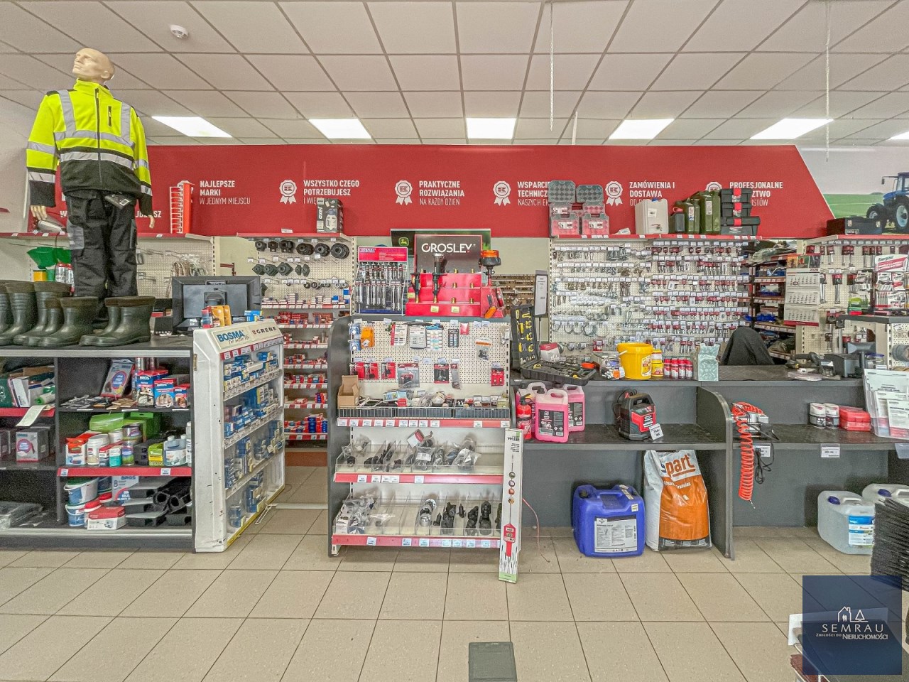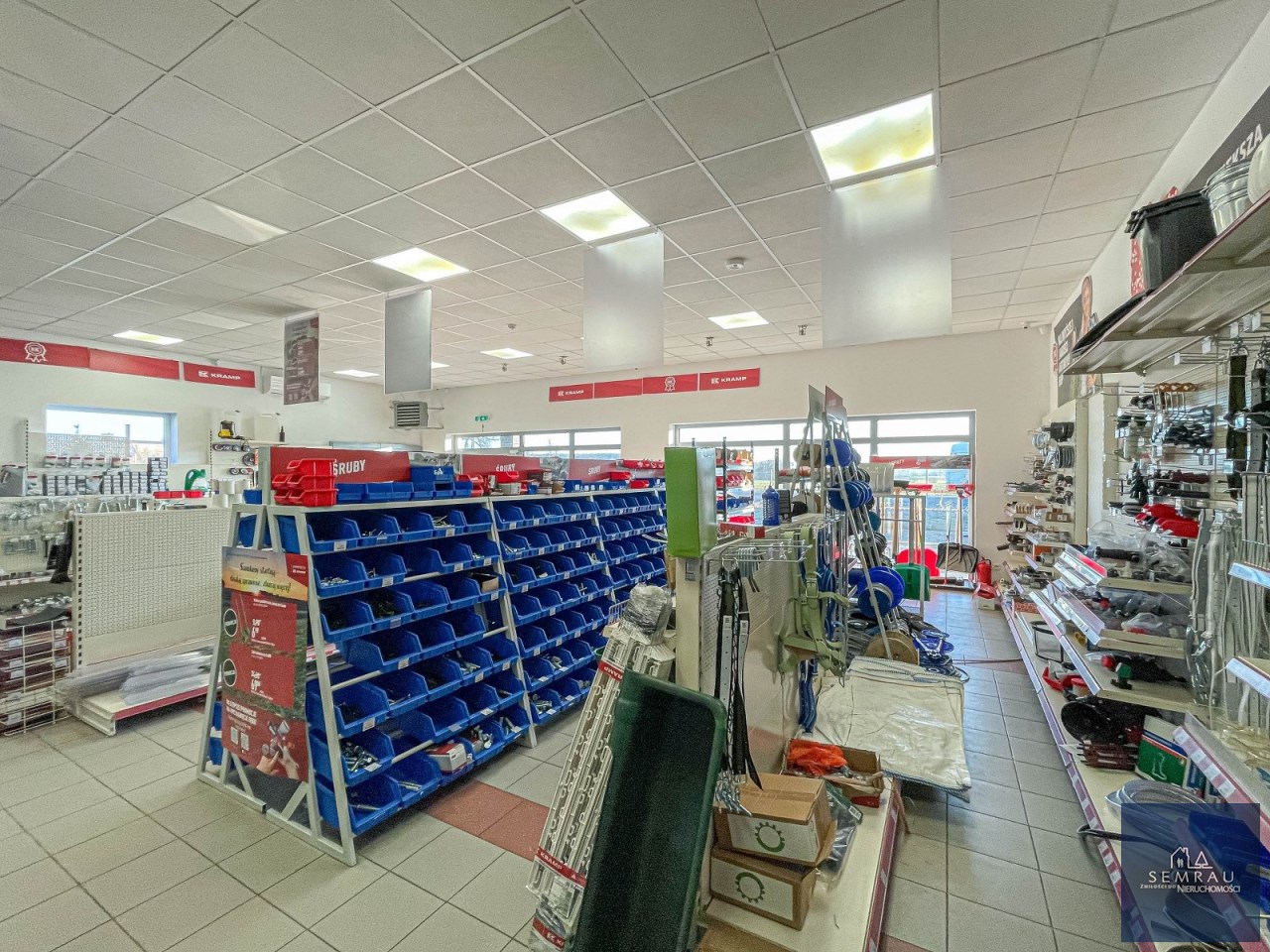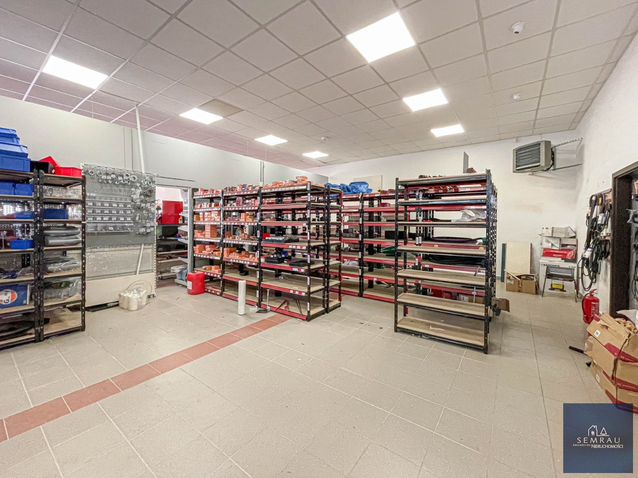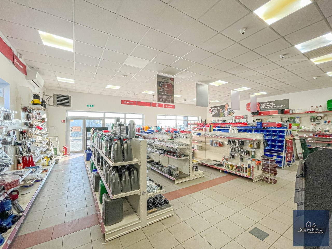 Funkcjonalny rozkład pomieszczeń - podzielony na część sprzedażową, magazynową, socjalną oraz biurową.