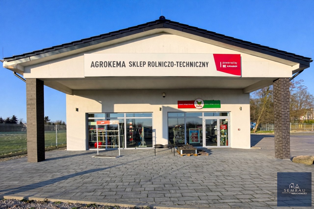 Oferujemy wolnostojący, parterowy budynek o przeznaczeniu handlowo-usługowym wraz z dwiema przyległymi działkami.